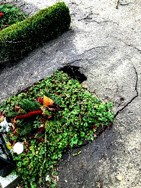 Er begab sich sodann also zum örtlichen Friedhof, suchte das Grab eines ihm seit Jahren gut vertrauten Onkels auf, und verbuddelte die Dose in einer Tiefe von gut 50 Zentimetern, direkt rechts neben dem dort befindlichen Grabstein mit den Initialen des Verstorbenen ortsbekannten W. G. aus Fahrenhorst.